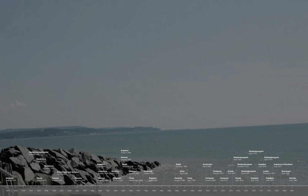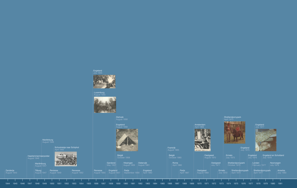 Een voorbeeld van een overzicht van (korte en lange) vakanties van een gezin, met op de achtergrond een vakantiefoto.